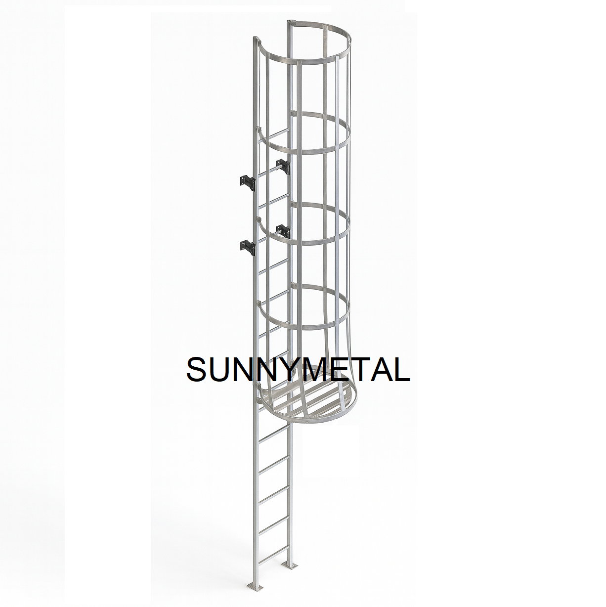 Cylindrical aluminium cage provides continuous fall protection during ascent and descent. -