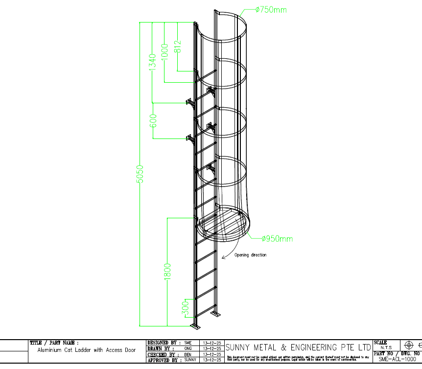 Manufactured by Sunny Metal & Engineering Pte Ltd, this ladder system is designed, fabricated, and assembled in-house, ensuring strict quality control and precise adherence to project drawings. Custom options include: