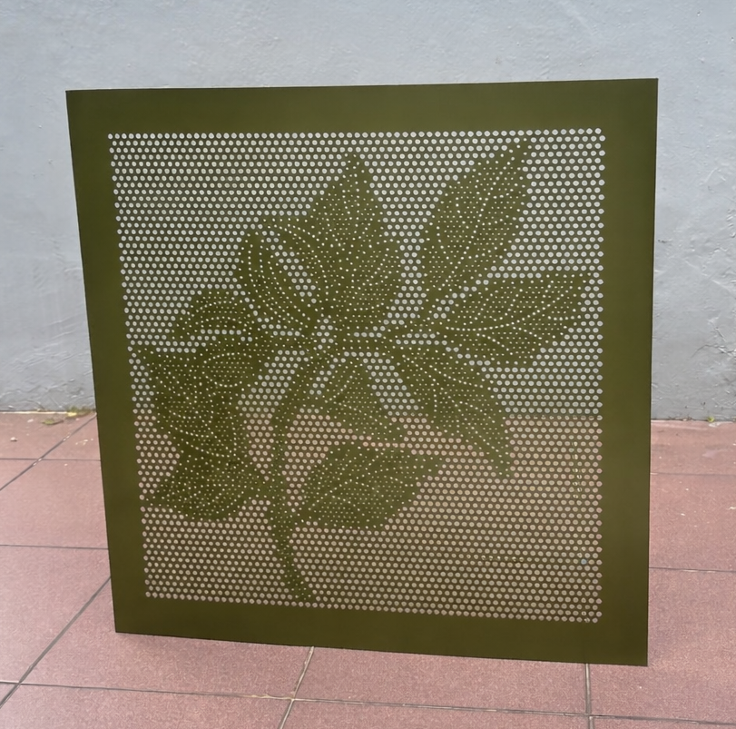 Laser Cut Decorative Leaf Panel – 600x600mm (Perforated Steel)