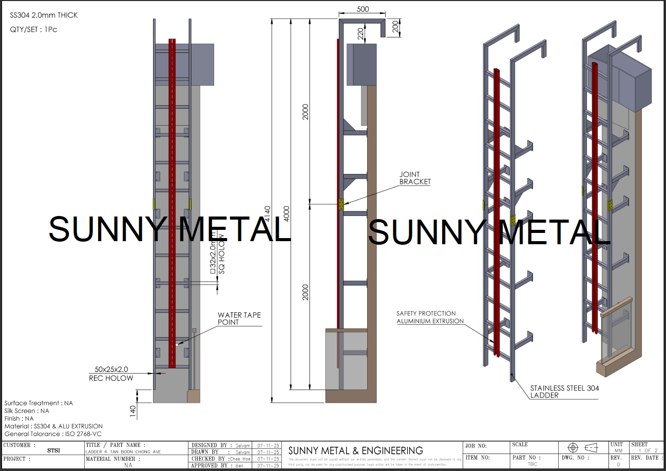 This is a professional industrial access ladder system, fabricated in Stainless Steel 304, designed for applications where corrosion resistance, structural strength, and worker safety are essential.