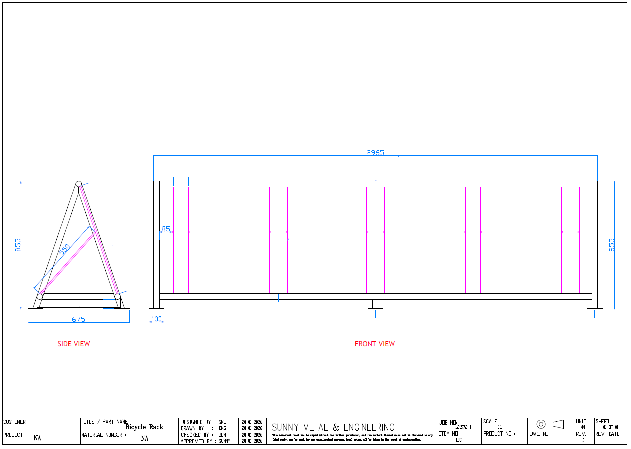 This multi-bay stainless steel bicycle rack is designed to accommodate multiple bicycles along a single continuous frame. It is suitable for outdoor and semi-outdoor installations in residential developments, commercial buildings, schools, and public facilities.