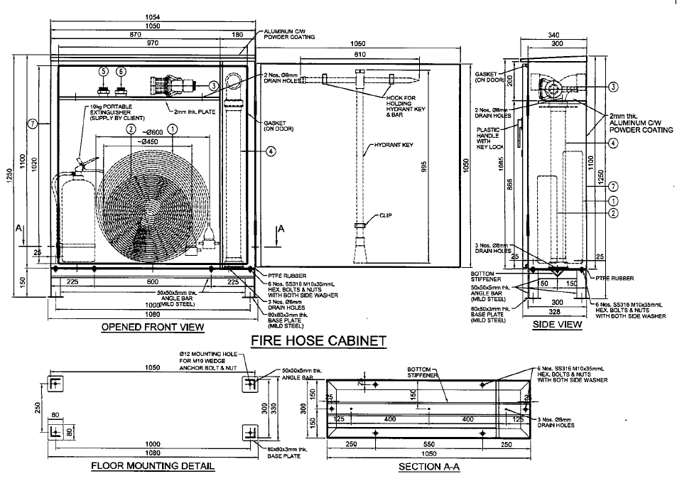 Stainless Steel Fire Hose Cabinet (Floor-Mounted, Custom Fabrication)